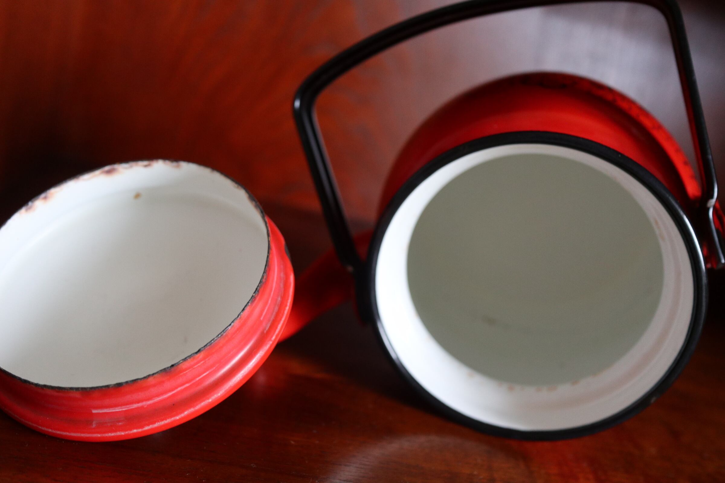 本体内側、汚れ使用感あり・外側ほぼ汚れなし、注ぎ口剥がれあり