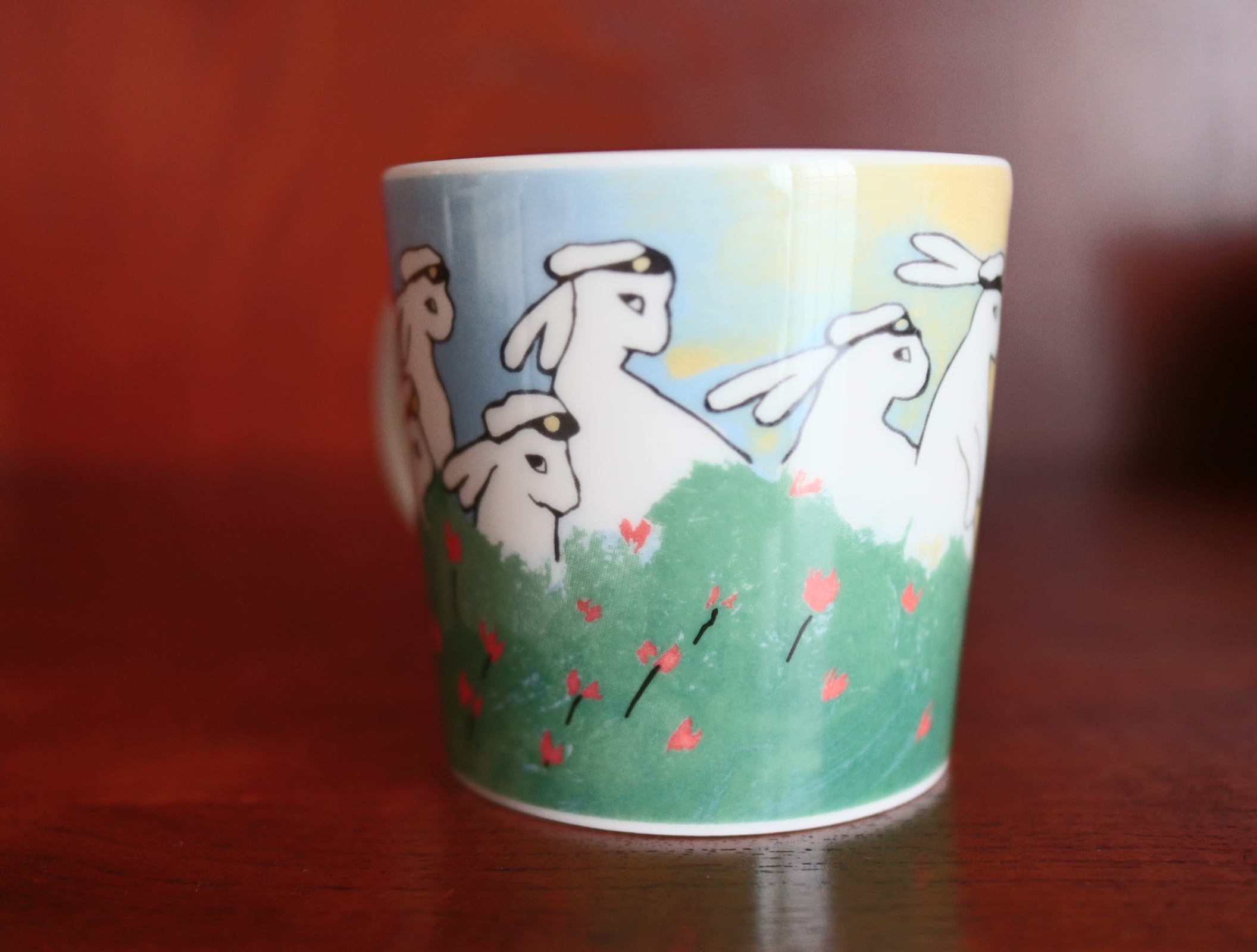 アラビア社のデザイナーだったヘルヤ・リウッコは1981年著「地平線のかなたまで」という絵本にウサギを登場させ、その後マグカップのデザインもシリーズ化されました。
