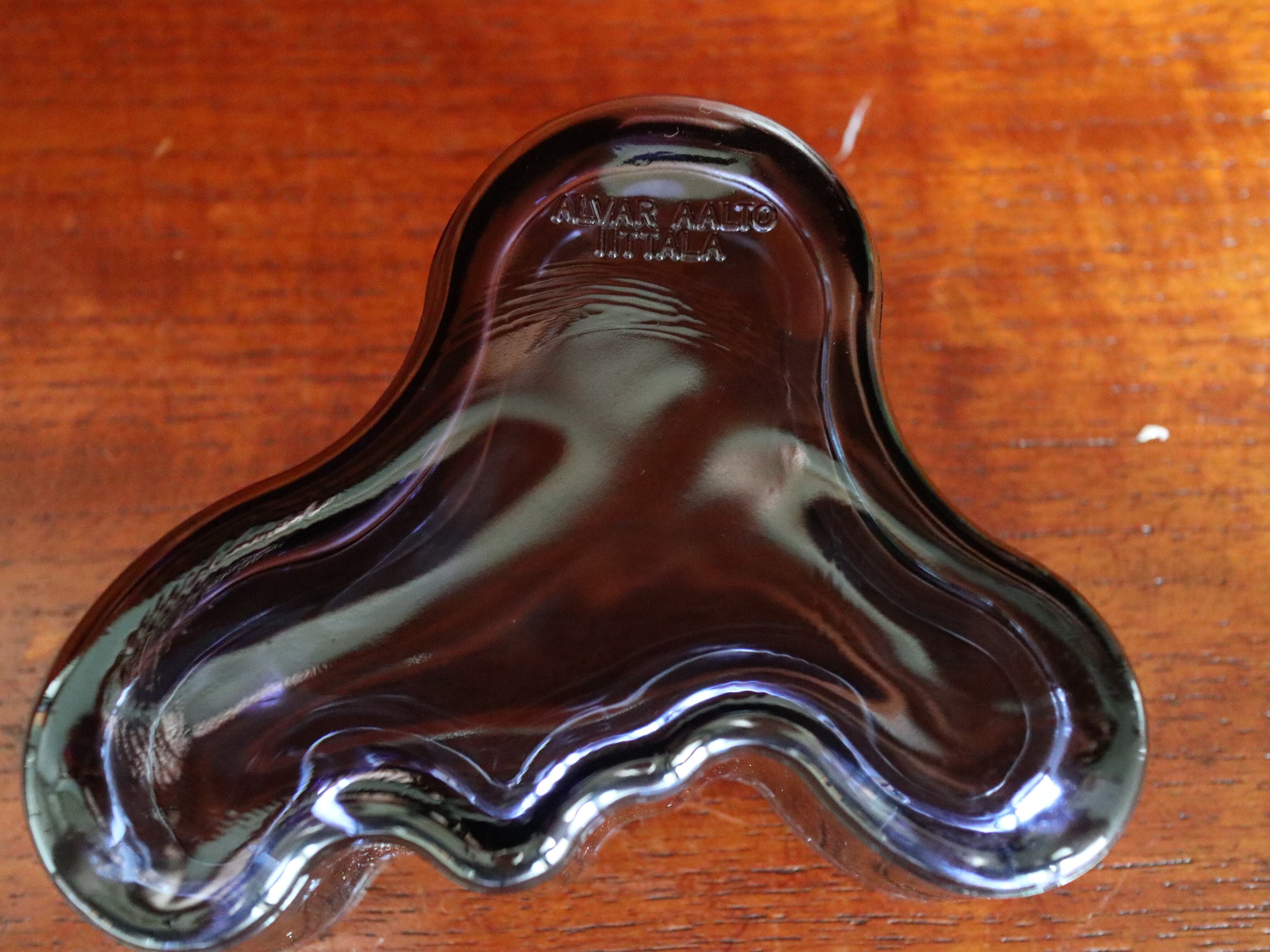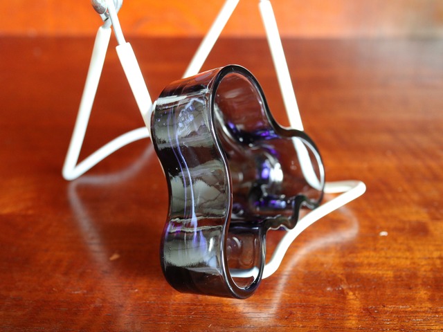 流れるような有機的なフォルムのモチーフは、フィンランドの湖の形、白樺の根本付近の断面形状など諸説存在します。イッタラの工房で今も手吹きで制作されています。