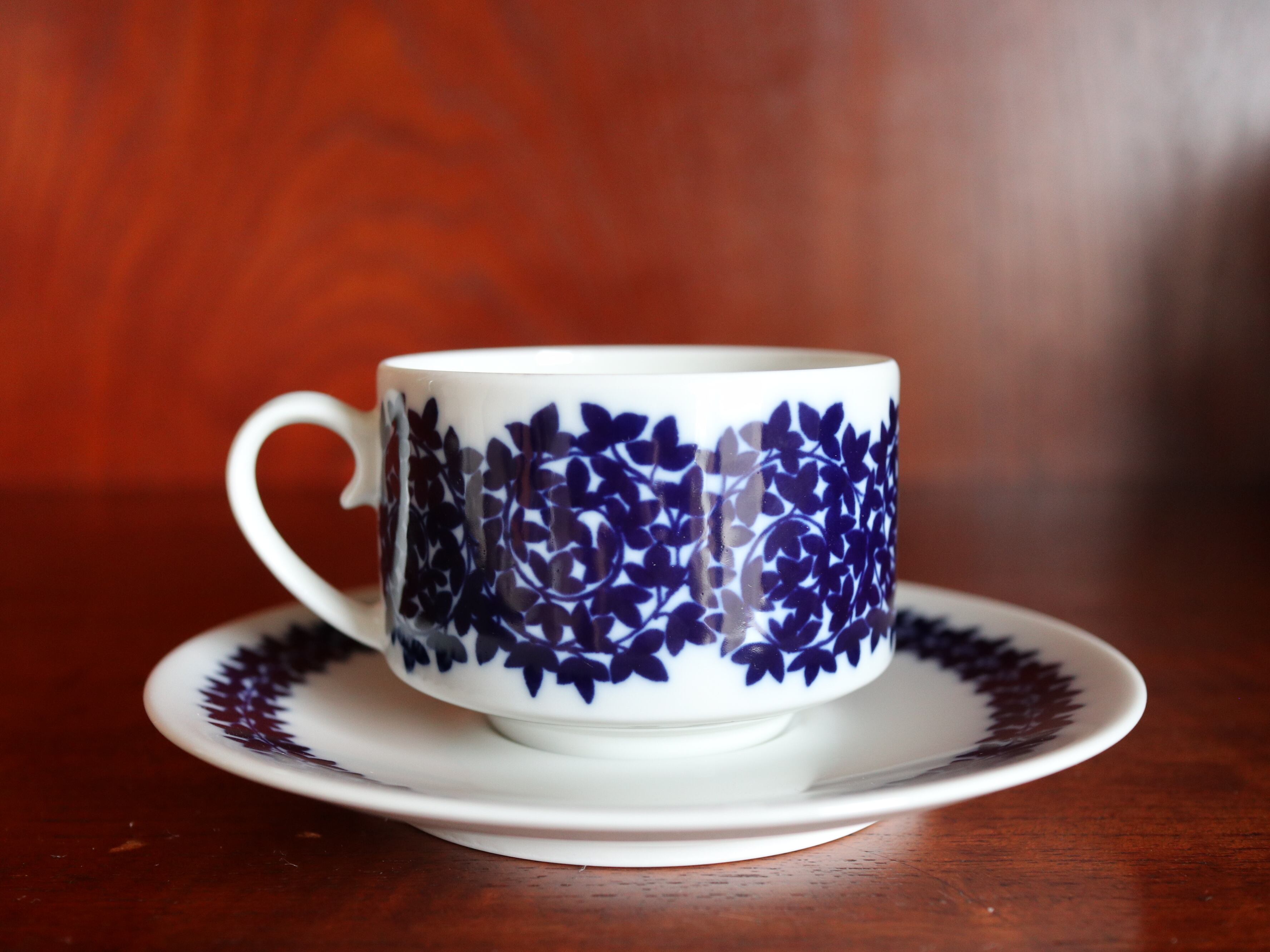 Asta(アスタ・スカンジナビアの女性の名前)は、コバルトブルーの花と蔦のような葉がプリントされています。talvikkiシリーズと同じくRaija Uosikkinen(ライヤ・ウオシッキネン)がデコレーションデザインを手掛かけて製作されました。