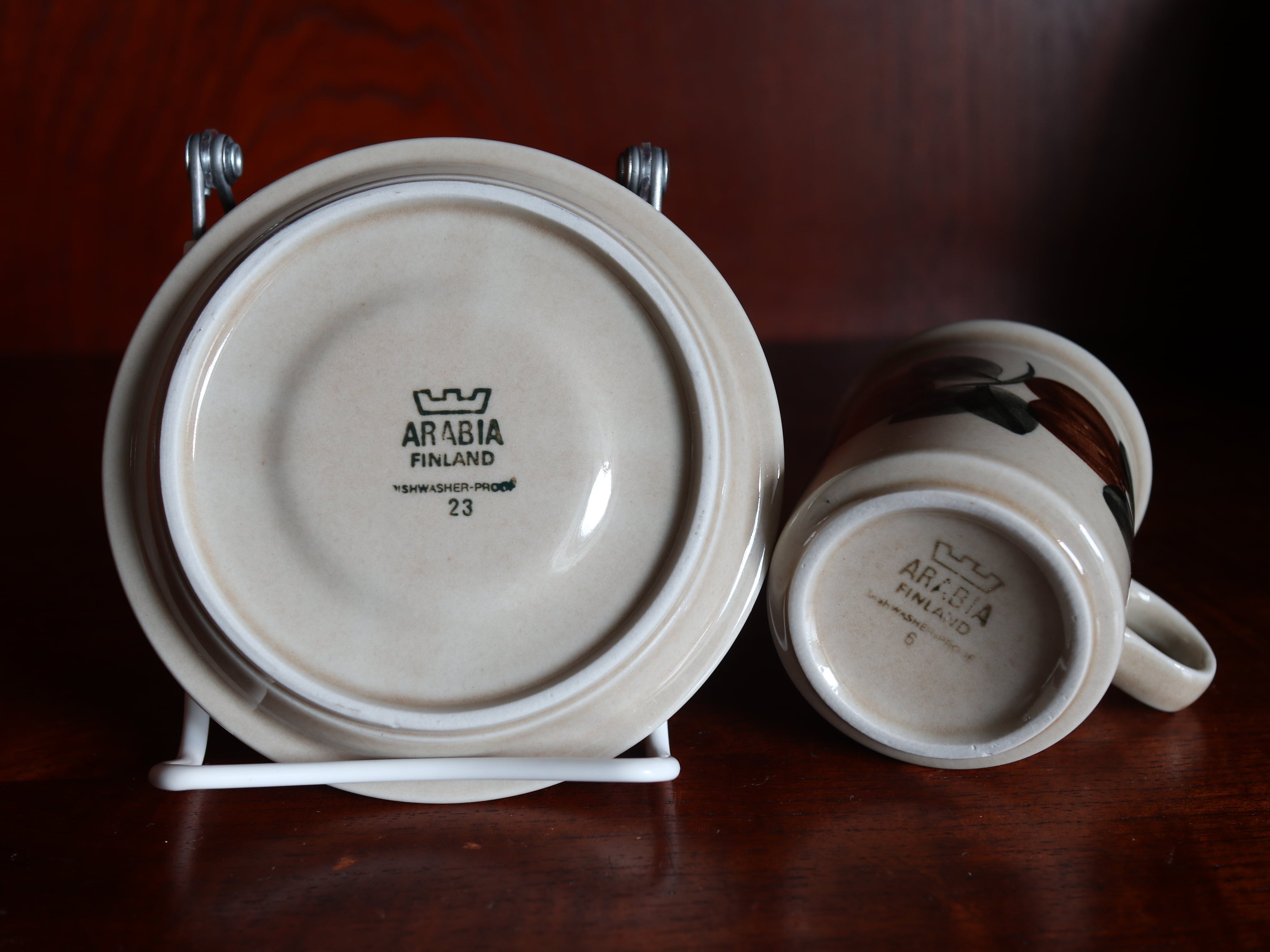 アラビアを代表するデザイナー、ライヤ・ウオシッキネンがデザインしたもので、カップ&ソーサー類にはハンドペイントによる葉が描き入れられています。