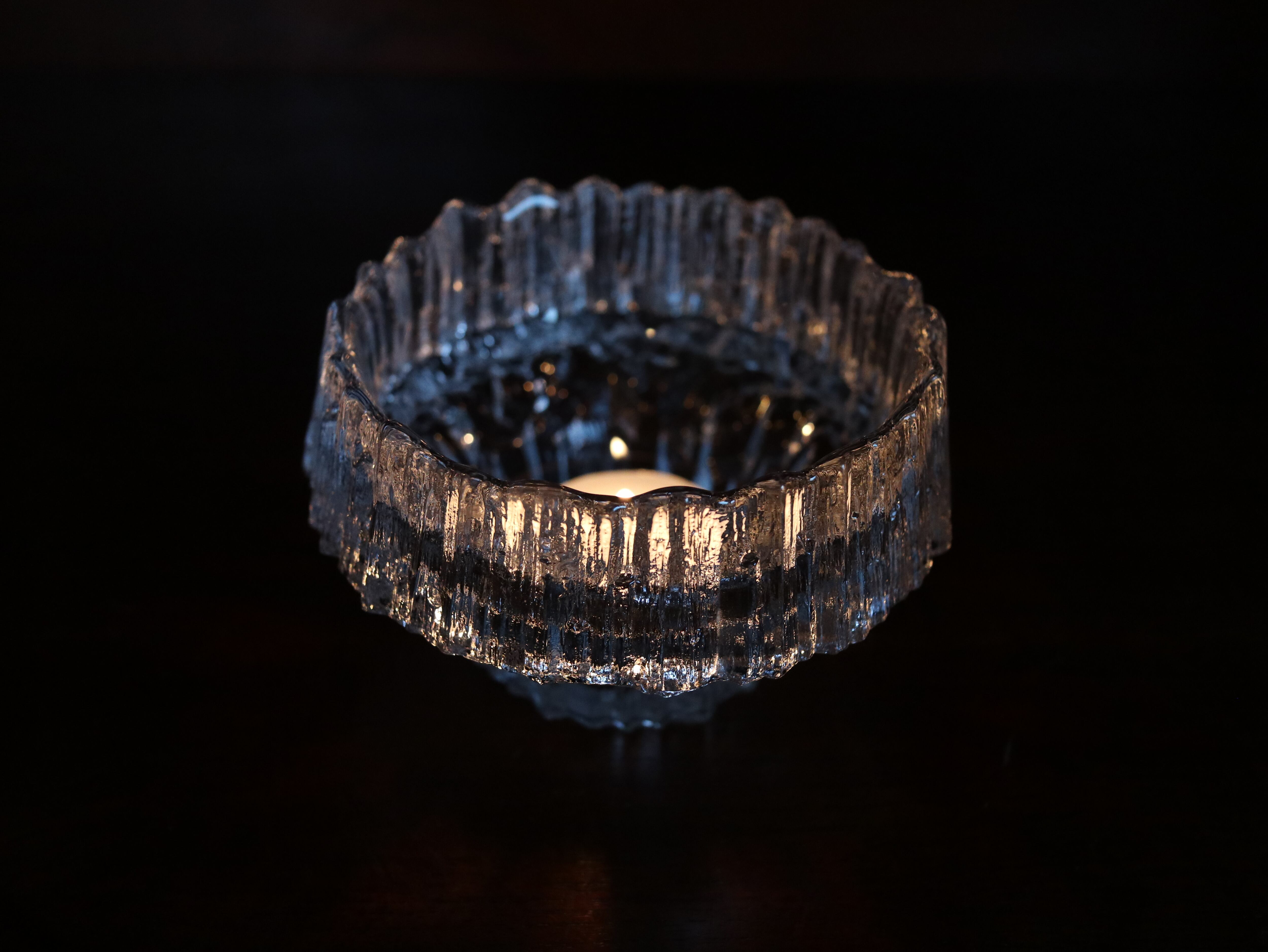 氷の彫刻のような重厚感、氷山を切り崩したようなデザインながら、繊細さも持ち合わせています。キャンドルが映し出す光と影は「星」のゆらぎを彷彿とさせます。