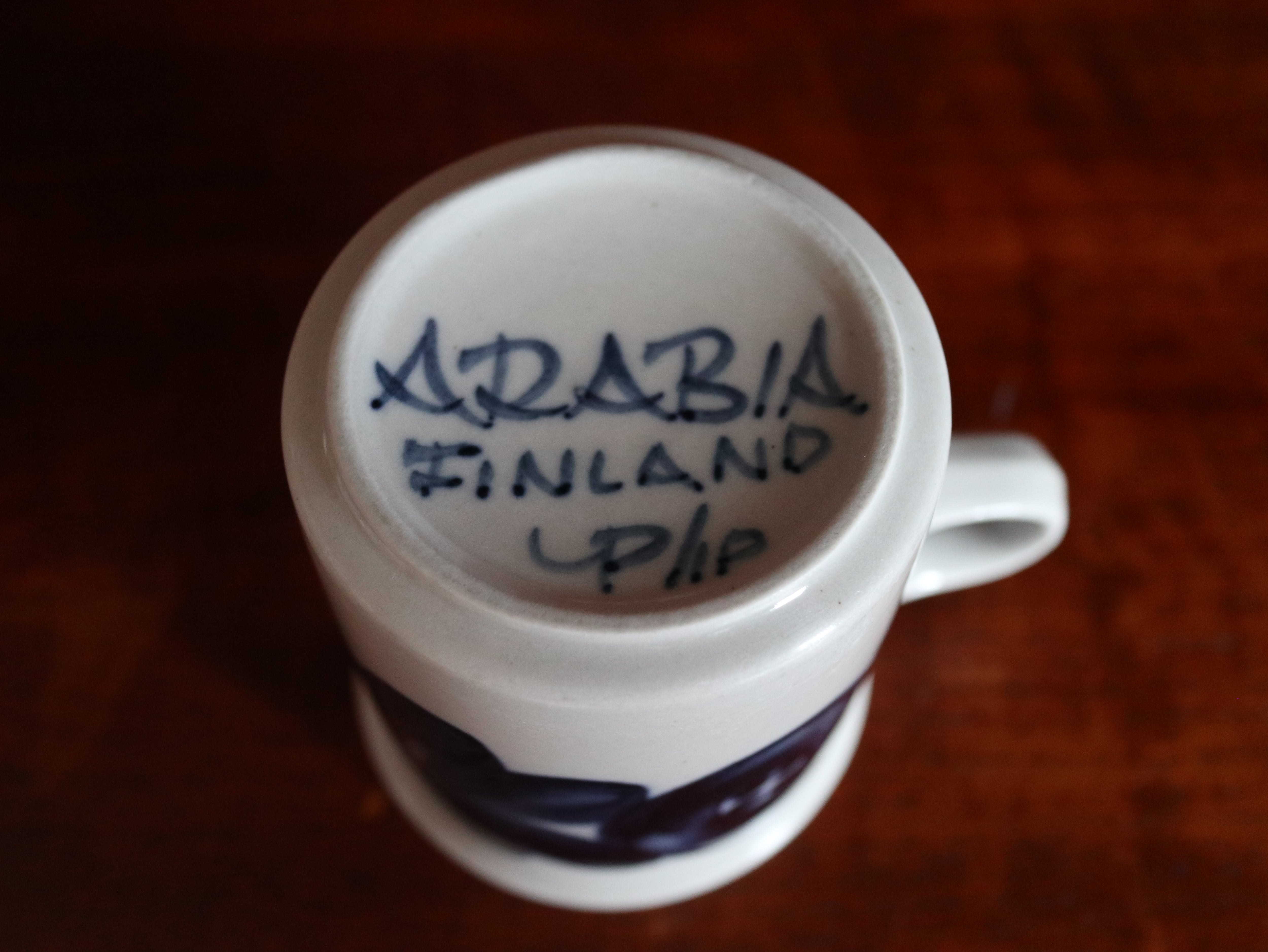 カップの側面いっぱいにアネモネの花がたっぷりと描かれたこのシリーズは、ウラ・プロコッペの代表作。手書きされた深い藍色は和食器のようで、日本でも当時から人気の高いものでした。