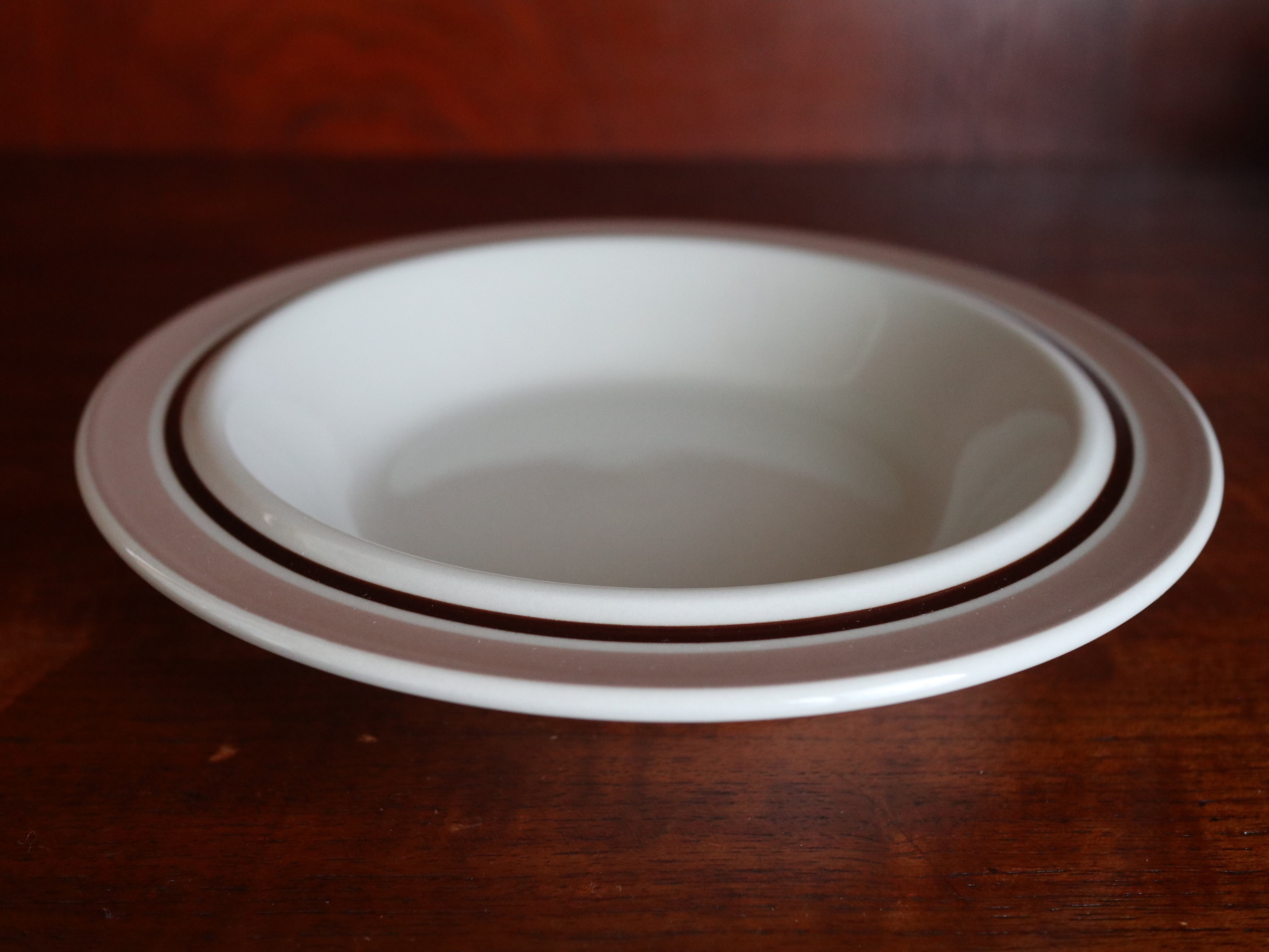 コラッリシリーズは、カップなどにはお花の絵柄がありますが、こちらのプレートは、絵柄はなくシンプルなラインが入っています。外側はピンクベージュ、内側は茶色のラインでとても良いバランスです。