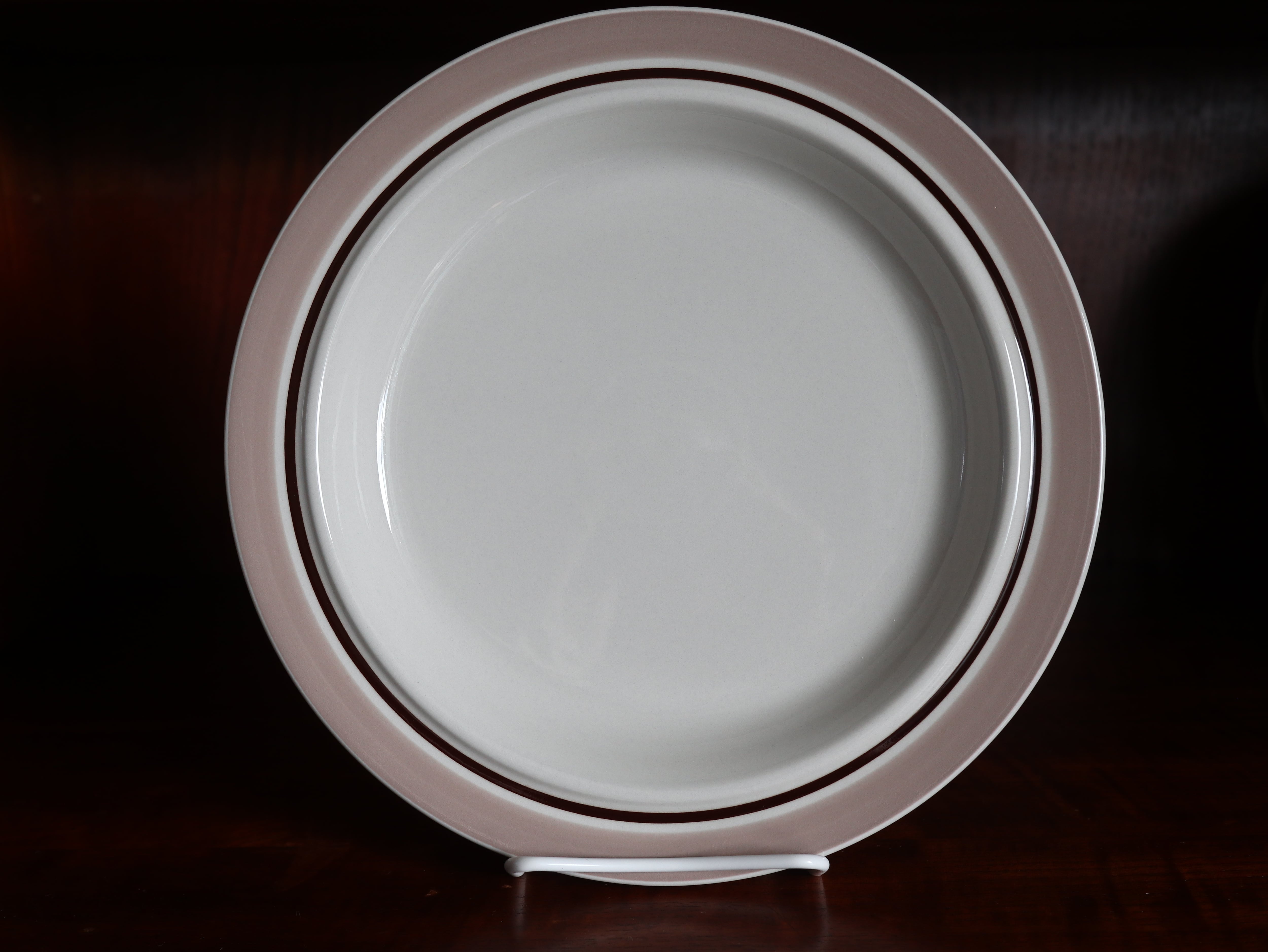 コラッリシリーズは、カップなどにはお花の絵柄がありますが、こちらのプレートは、絵柄はなくシンプルなラインが入っています。外側はピンクベージュ、内側は茶色のラインでとても良いバランスです。