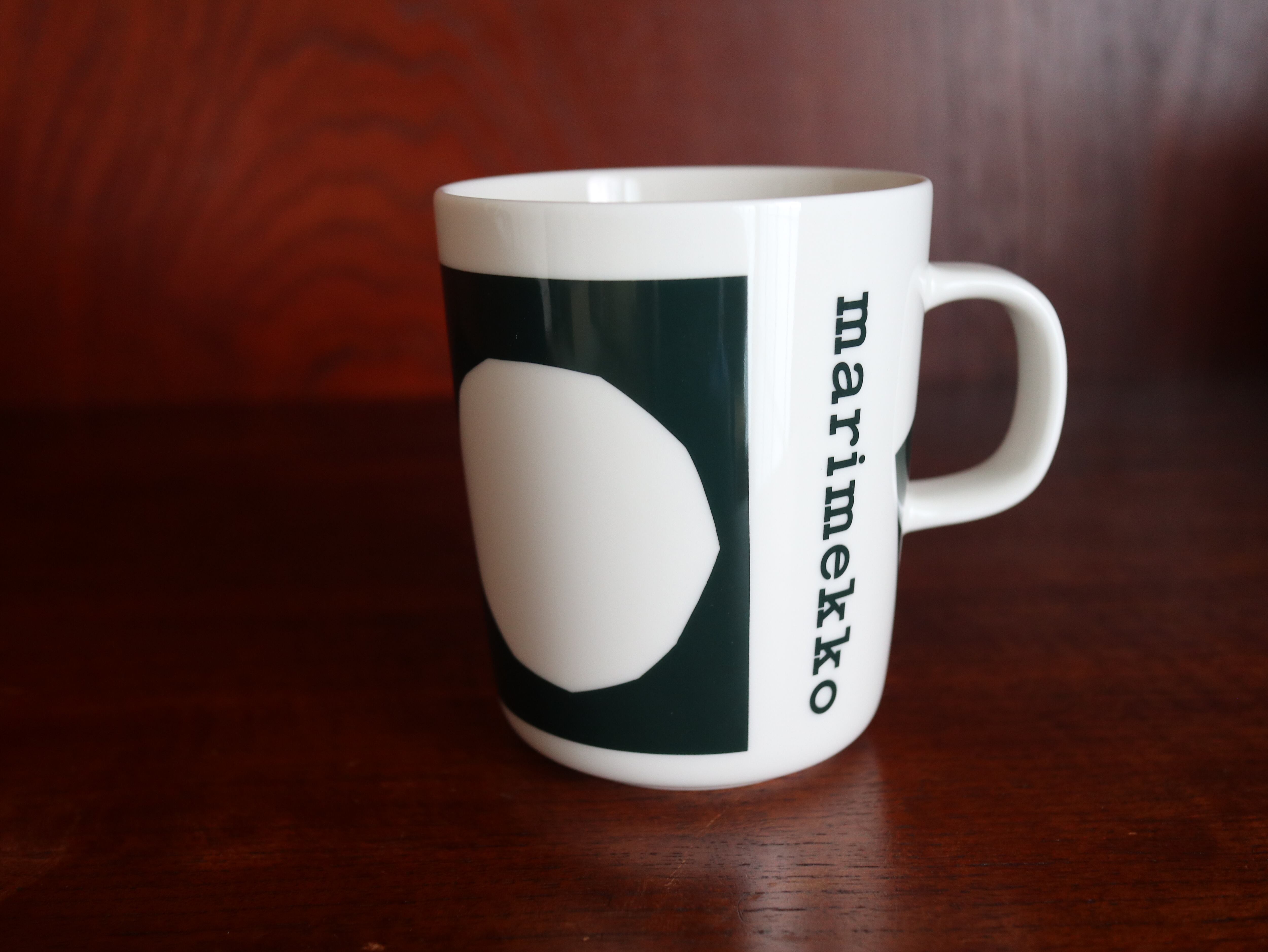 深いグリーン一色で描かれており、クールな印象でmarimekkoのブランドロゴが効いていてハイセンスさも加わります。
