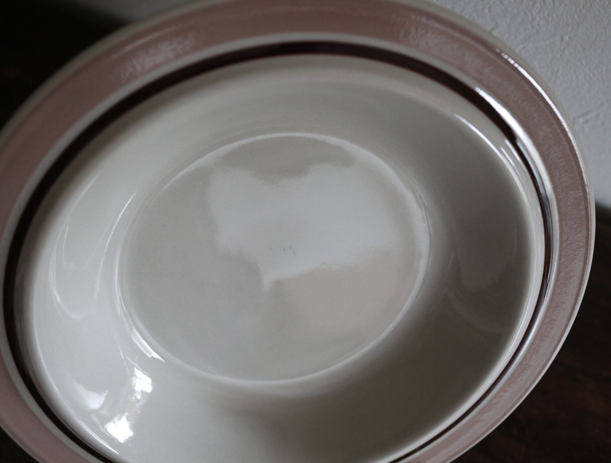 コラッリシリーズは、カップなどにはお花の絵柄がありますが、こちらのプレートは、絵柄はなくシンプルなラインが入っています。外側はピンクベージュ、内側は茶色のラインでとても良いバランスです。