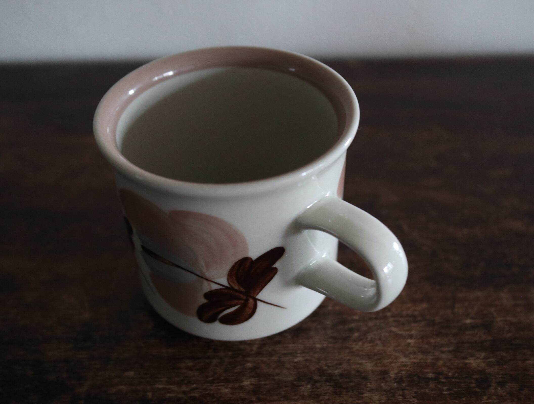 表面は珊瑚をイメージしたようなお花がハンドペイントされていて、飲み口内側のピンクベージュの縁取りがポイントになっています。