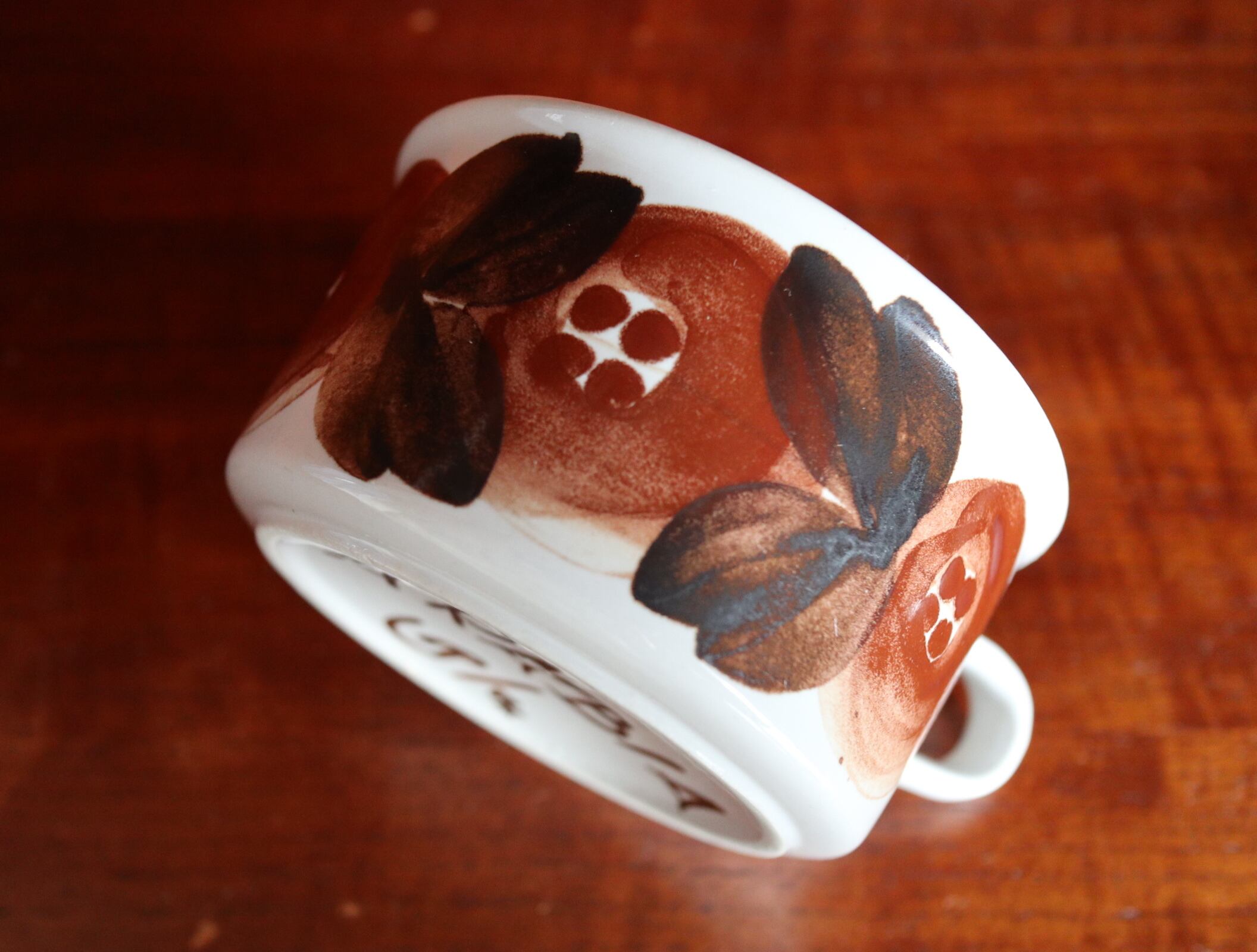 Rosmarinとはフィンランド語でローズマリーを意味し、1点1点絵付師によって大胆に描かれた茶色の花はぽってりとしていて、独特な風合いを感じ取れます。