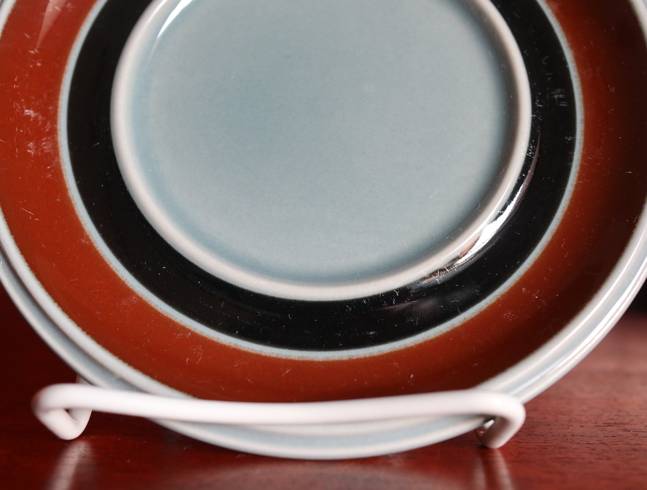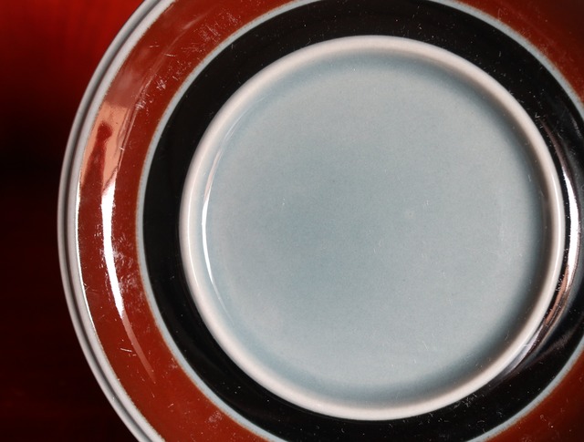 ソーサ:中央、輪郭ともに、カトラリー傷やスレがあります。特に輪郭に茶色部分には傷が多く見られます。