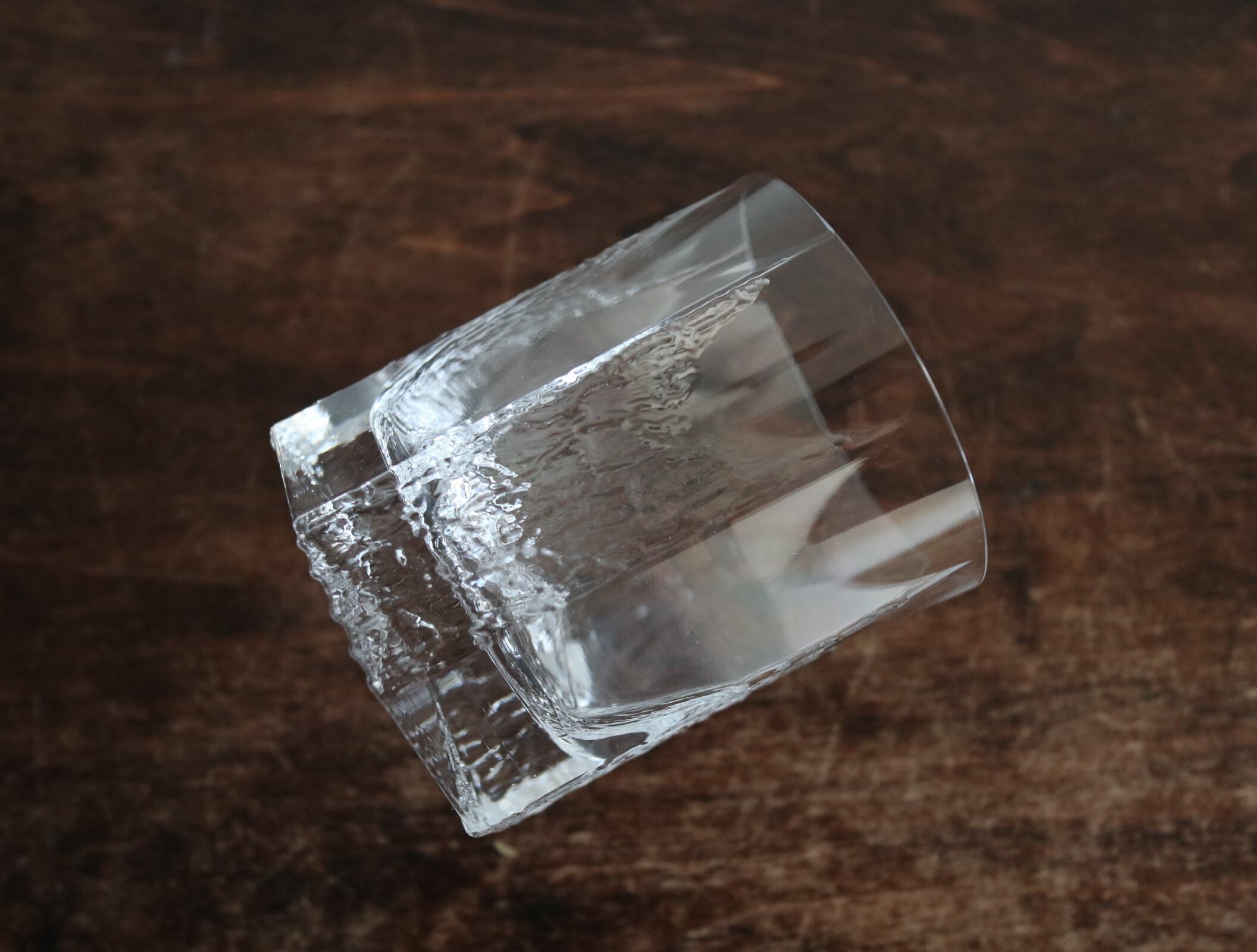 デザイナーのティモ・サルパネヴァは多く名作を生みだし、イッタラ社のシンボルである「i」マークを生み出したことでも知られています。Kalinka/カリンカのグラスは、多面体のフォルムの交互の面に、樹木の樹皮、木肌を思わせるモチーフが施されています。森の多いフィンランドらしいデザインが魅力的なシリーズです。裏面の美しさにも思わず目を奪われます。