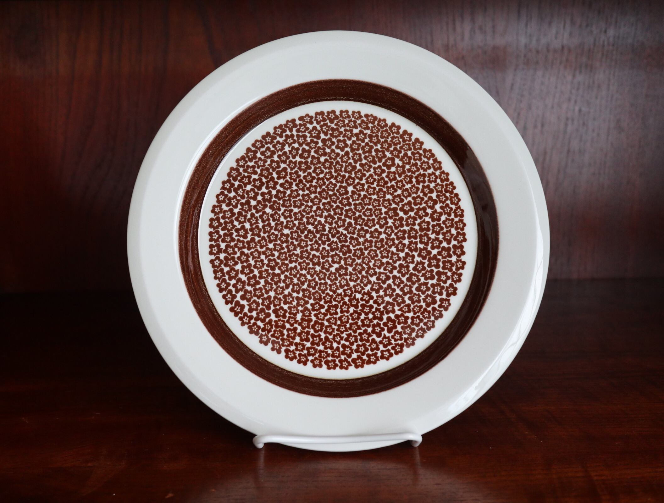 小花柄のかわいらしさもありながら、ブラウンの色味が落ち着きを与えて少女っぽくはならず、他のデザインの食器とも調和するヴィンテージらしい雰囲気です。