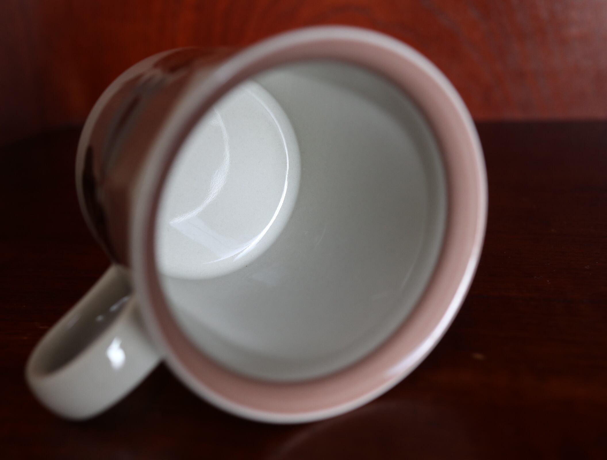 表面は珊瑚をイメージしたようなお花がハンドペイントされていて、飲み口内側のピンクベージュの縁取りがポイントになっています。