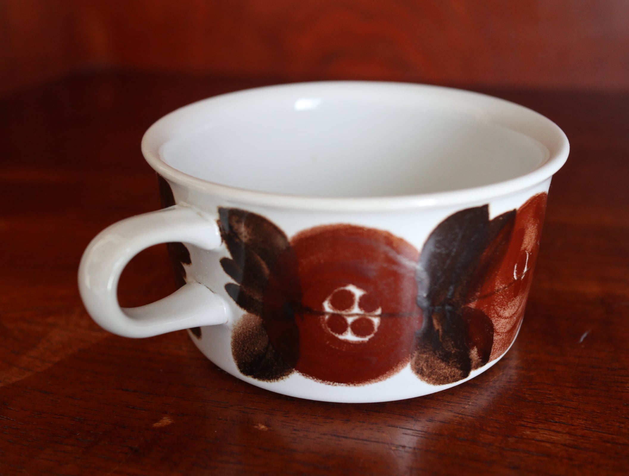 Rosmarinとはフィンランド語でローズマリーを意味し、1点1点絵付師によって大胆に描かれた茶色の花はぽってりとしていて、独特な風合いを感じ取れます。