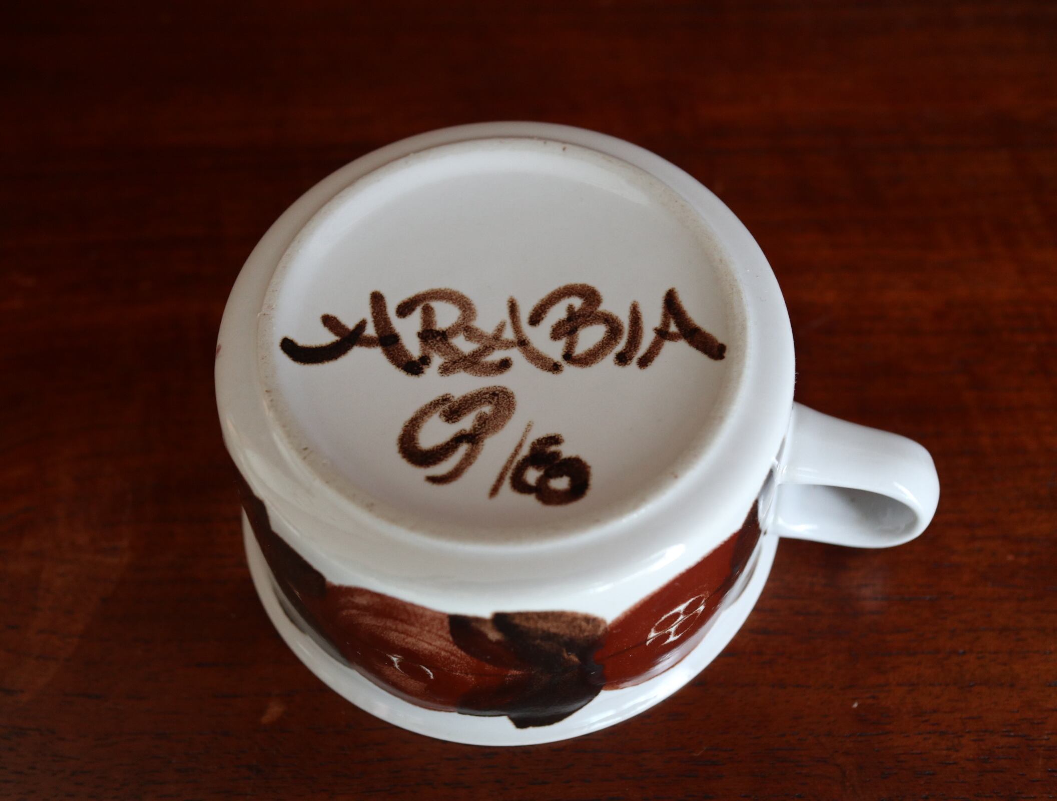 ウラ・プロコッペの代表作の1つ、アラビア・Rosmarin/ロスマリンのティーカップ&ソーサー。 アネモネの色違いのようなシリーズともいえます。
