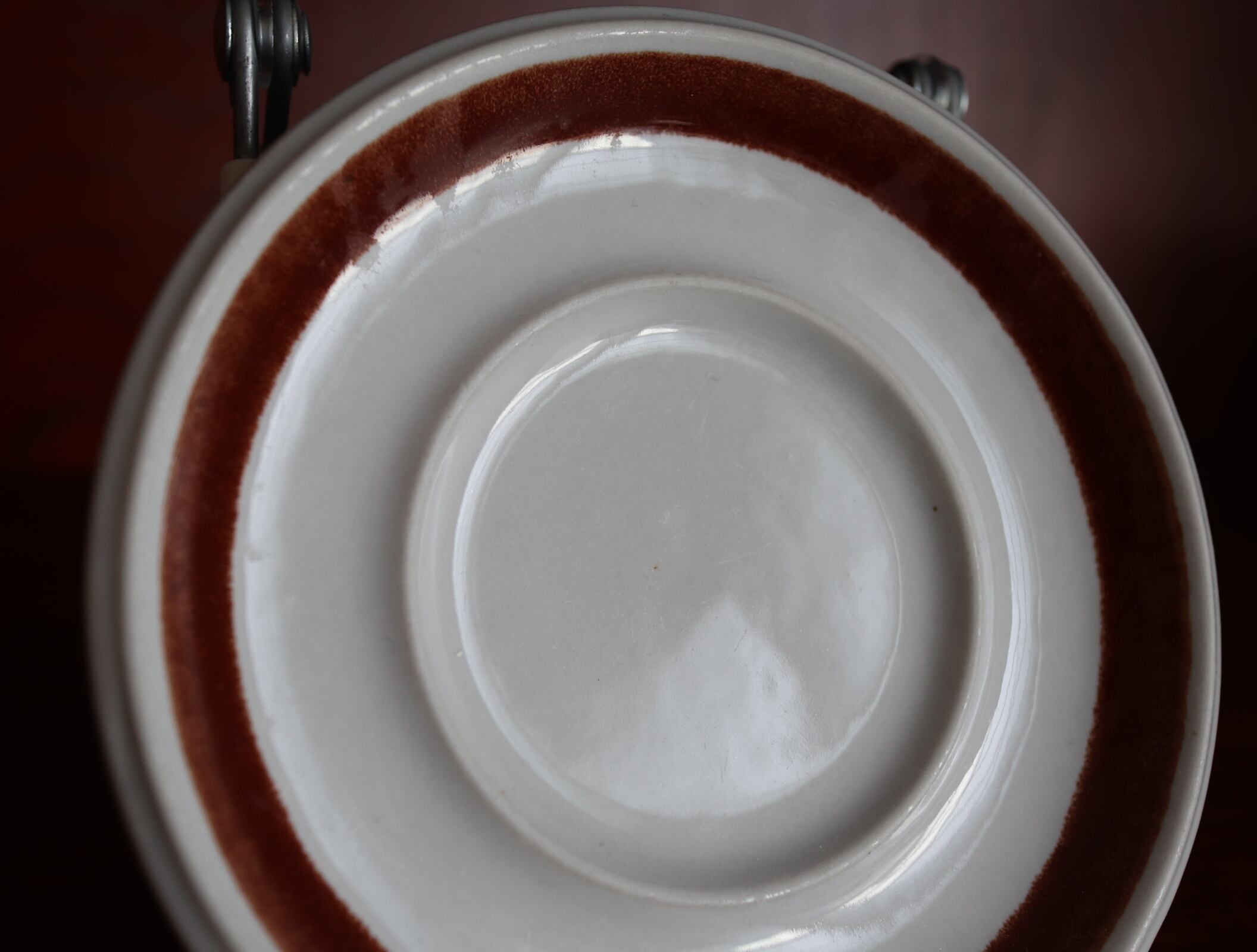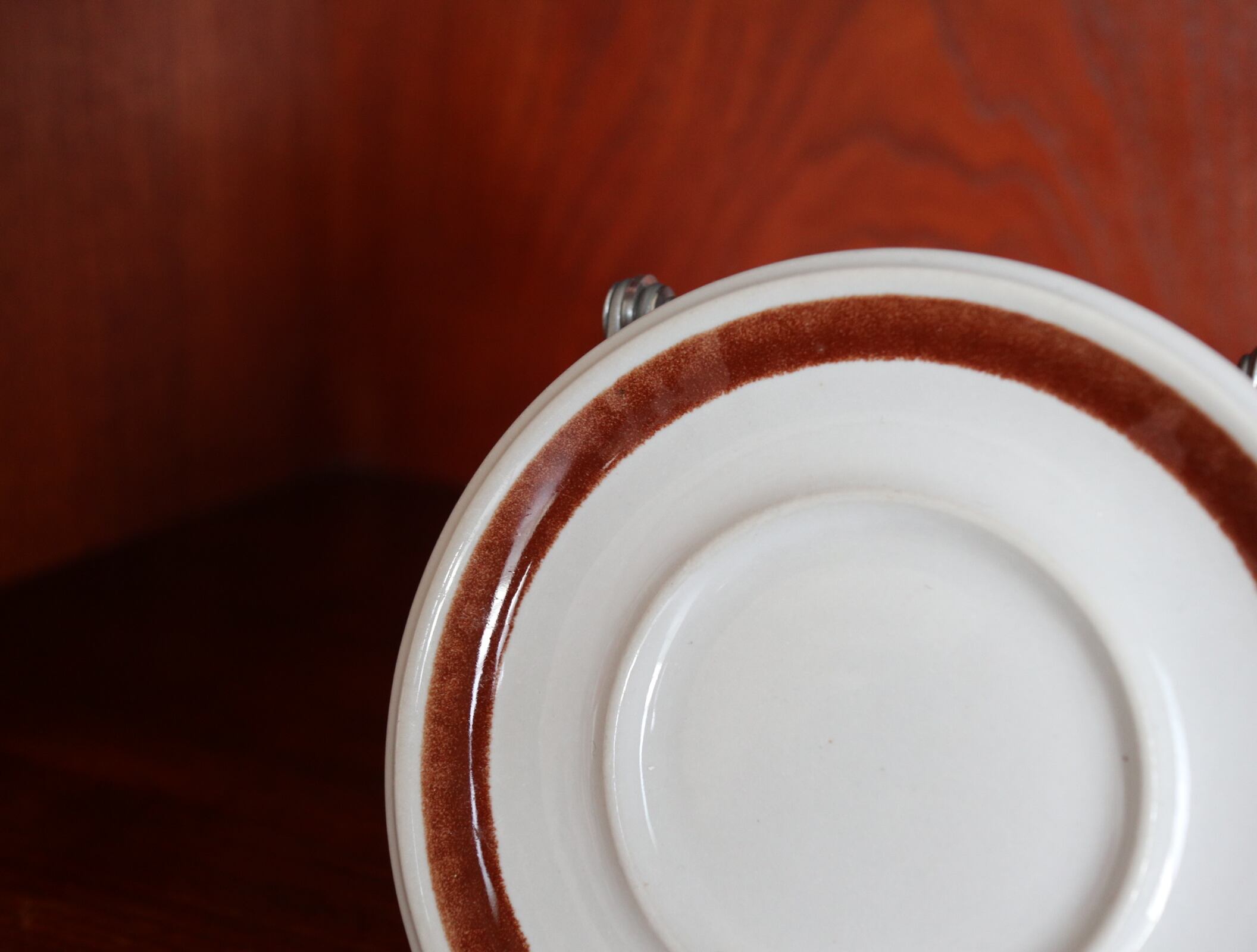 ソーサ:小さな傷がありますが、目立ちにくく良い状態です。輪郭の茶色の部分に、スレのようにまだらになっている箇所があります。