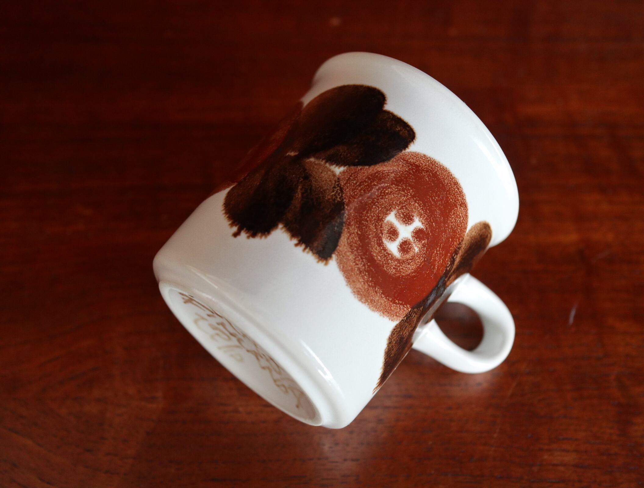 Rosmarinとはフィンランド語でローズマリーを意味し、1点1点絵付師によって大胆に描かれた茶色の花はぽってりとしていて、独特な風合いを感じ取れます。