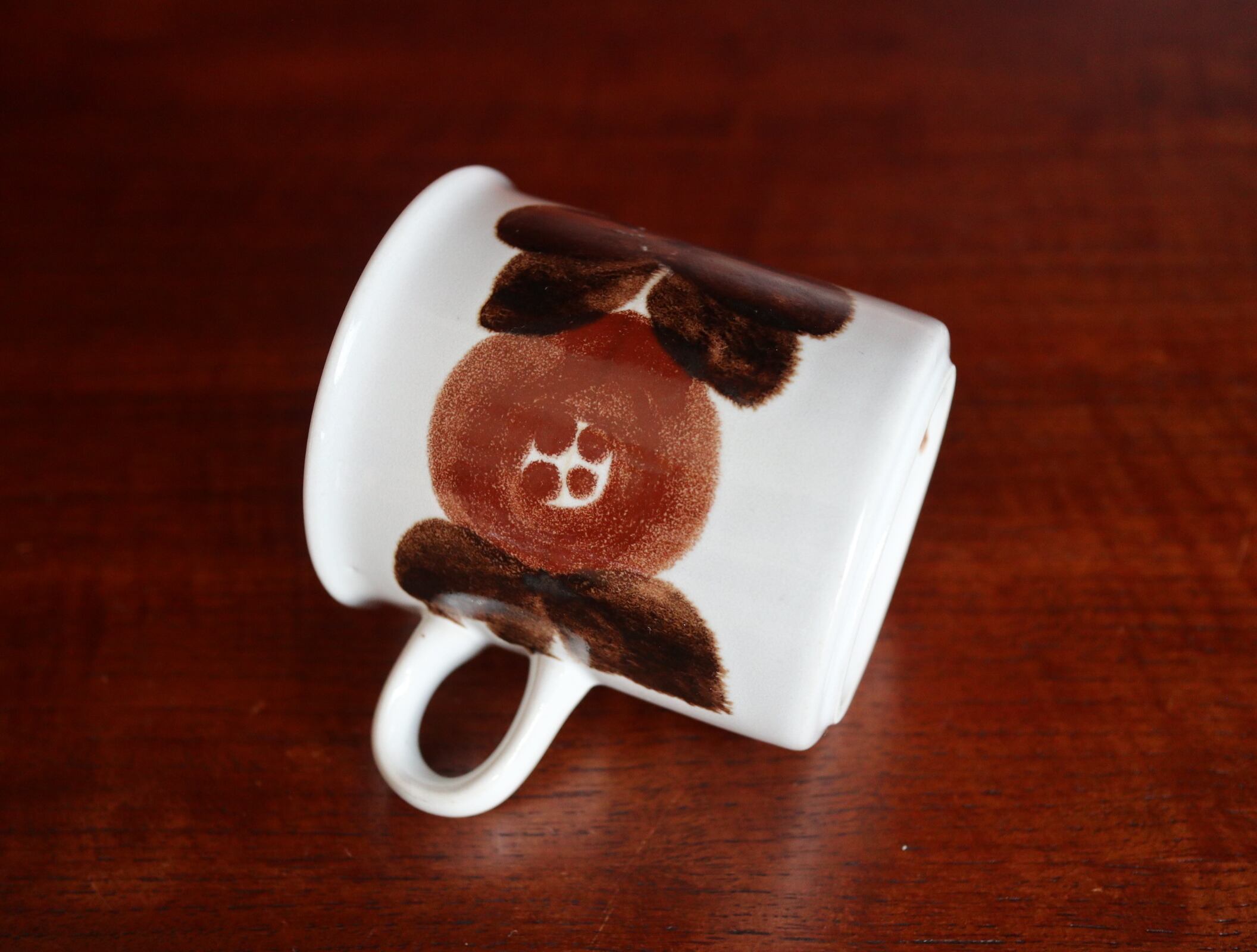 Rosmarinとはフィンランド語でローズマリーを意味し、1点1点絵付師によって大胆に描かれた茶色の花はぽってりとしていて、独特な風合いを感じ取れます。